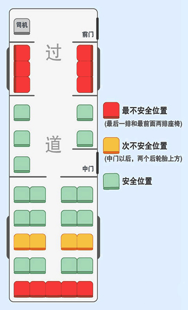 从设计的问题或事故发生的概率等方面来考虑,公交车的座位安全系数各有不同,你知道公交车上最安全的位置在哪里吗?